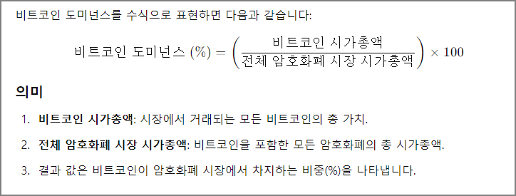 비트코인 도미넌스는 다음 공식으로 계산됩니다: