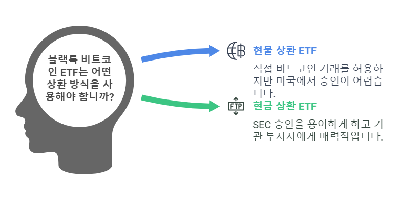 - SEC 규제 준수: 미국에서는 현물 상환 방식보다 현금 상환 방식이 더 쉽게 승인됨.