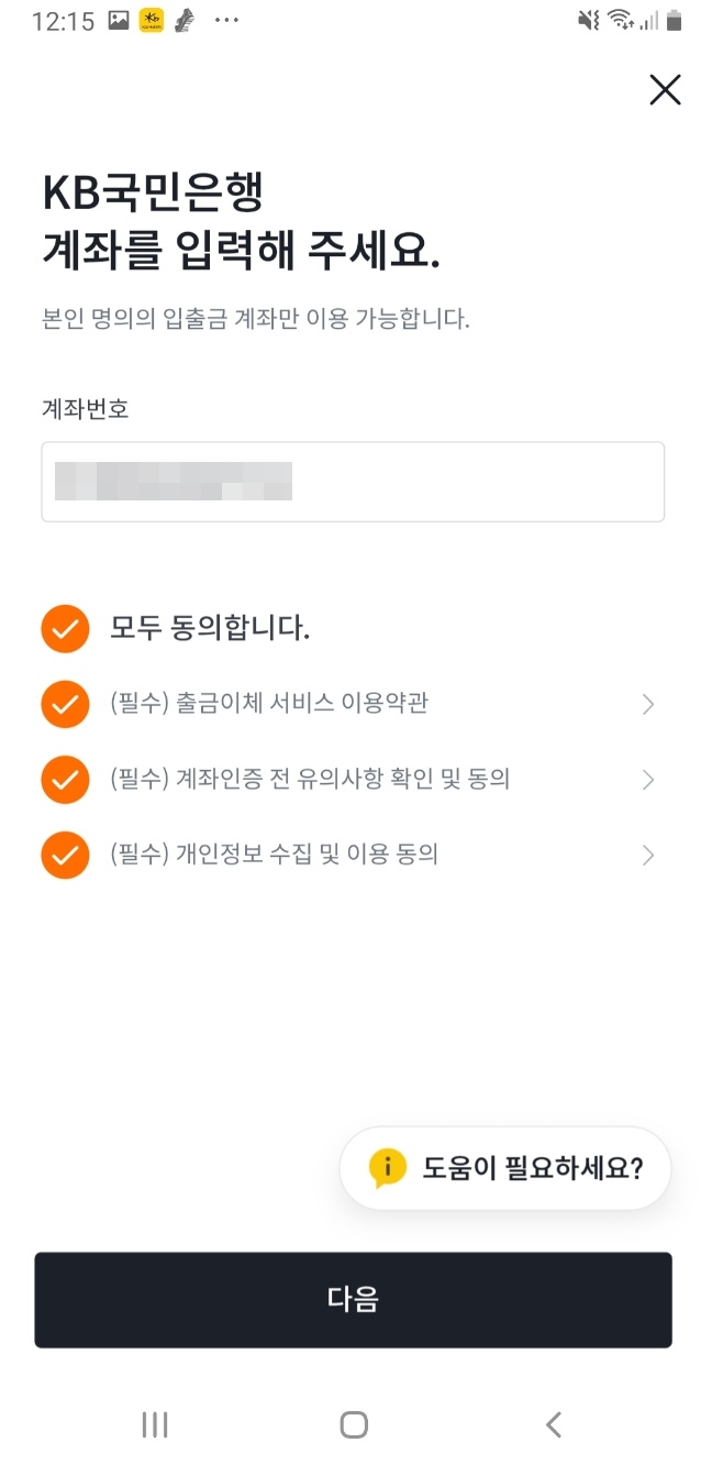 - 본인 명의의 KB국민은행 계좌번호를 입력합니다.