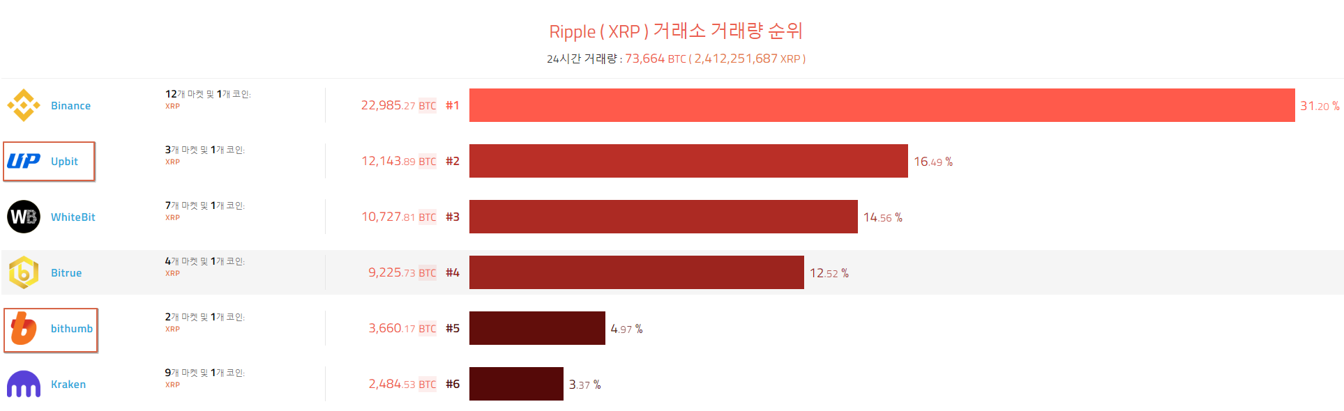 - 실제로 업비트와 빗썸 같은 한국 거래소에서는 XRP의 거래량이 전체 코인의 20~30%를 차지하는 경우도 많습니다.
