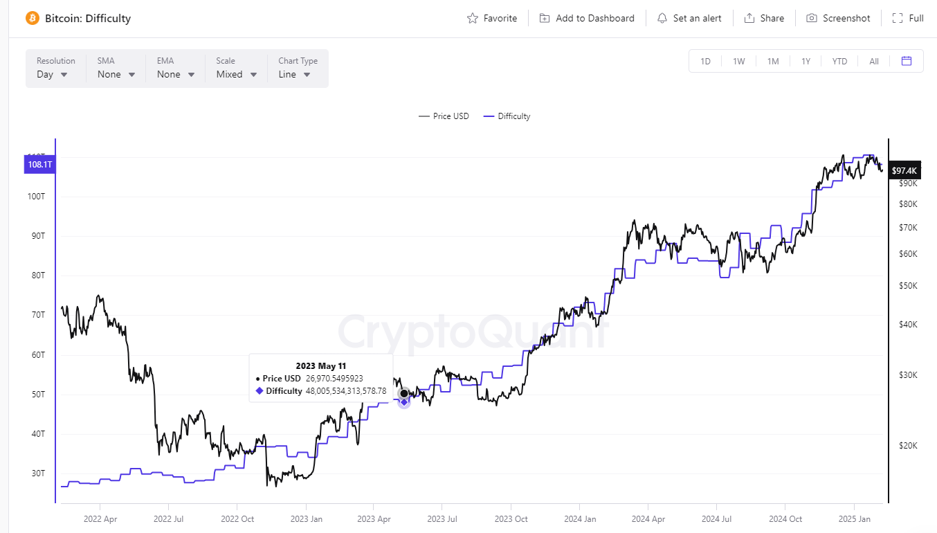 1.CryptoQuant 에서 비트코인 채굴 난이도(Difficulty) 확인 (무료)