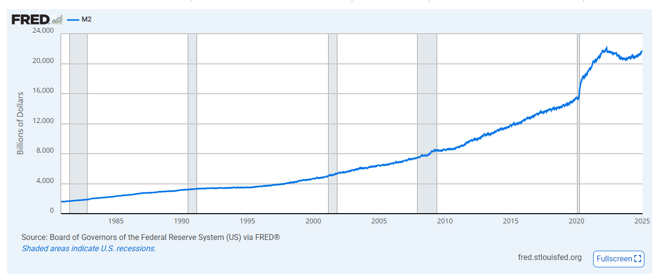 - M2 증가 → 시장에 돈이 많이 풀림 → 비트코인 상승 가능성 📈