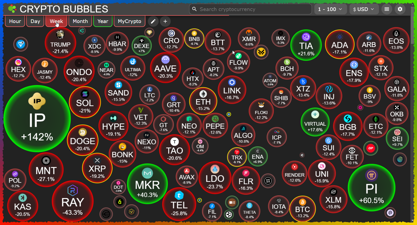 - 비트코인 및 알트코인의 주춤한 상태: 비트코인이 하락하면서 다른 알트코인들도 상승 동력이 부족한 가운데, Pi 코인이 상대적으로 독자적인 상승 흐름을 보임.